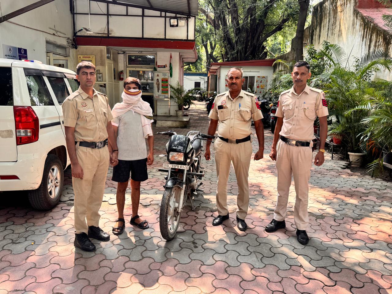 लोधी कॉलोनी में मोबाइल छीनने वाला बदमाश पकड़ा, अपराध में इस्तेमाल मोटरसाइकिल बरामद