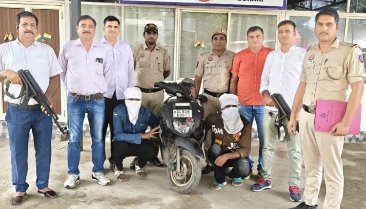 बुरारी में चाकू की नोक पर लूट करने वाले दो नशेड़ी गिरफ्तार, स्कूटी-चाकू समेत मोबाइल बरामद