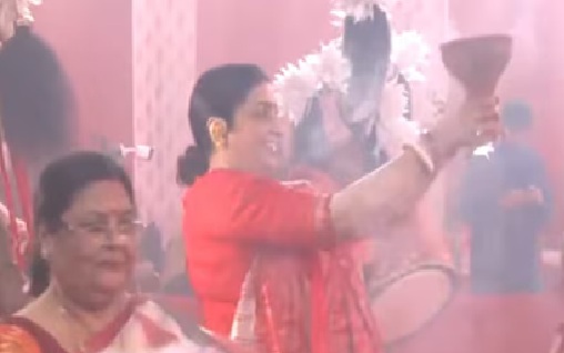 दशहरे पर स्मृति ईरानी ने दुर्गा पंडाल में किया धुनुची नाच