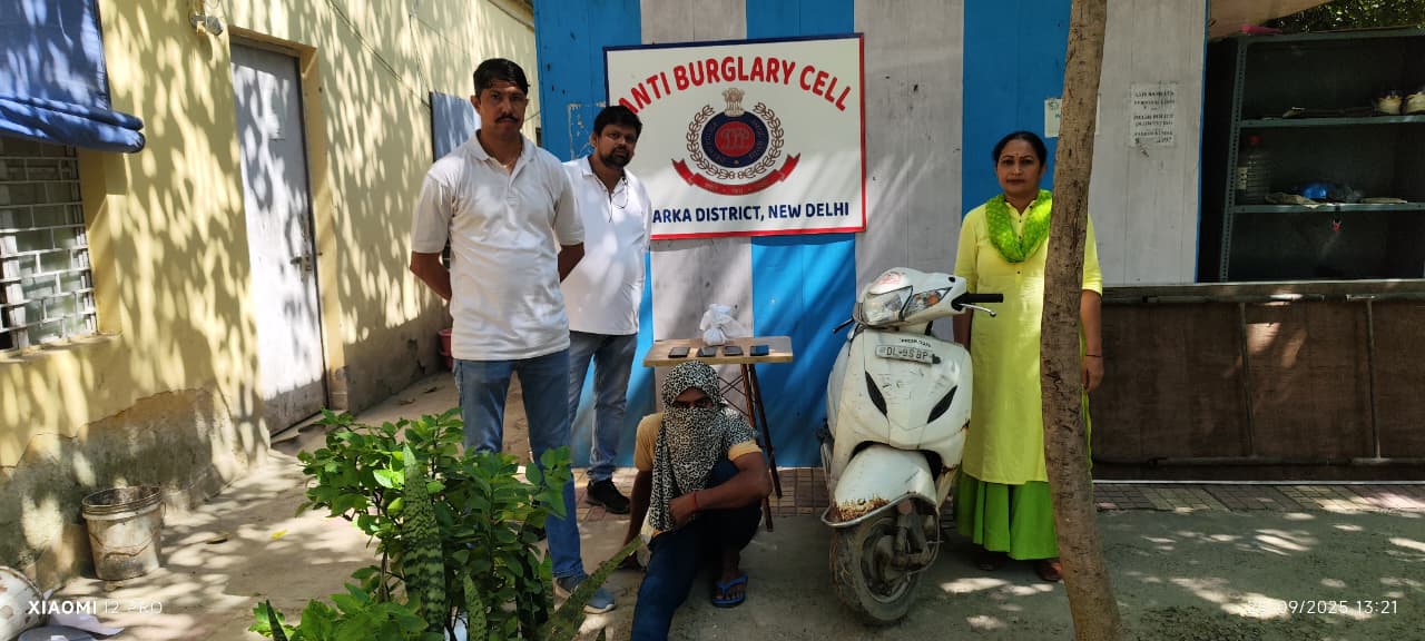 नई दिल्ली: दिल्ली के द्वारका जिले की एंटी-बर्गलरी सेल ने एक शातिर चोर अविनाश उर्फ विक्की (33 वर्ष) को गिरफ्तार किया है। यह चोर चोरी की जुपिटर स्कूटी का इस्तेमाल कर नजफगढ़ के लोकेश पार्क में 13 सितंबर की रात एक घर में सेंधमारी कर सोने-चांदी के गहने, चार मोबाइल फोन और अन्य सामान चुरा ले गया था। पुलिस ने इसके पास से एक सोने का मंगलसूत्र, एक जोड़ी सोने की बालियां, दो सोने की अंगूठियां, एक सोने की नोज पिन, दो जोड़ी चांदी की पायल, दो जोड़ी चांदी की बिछिया, चार चोरी के मोबाइल और चोरी की स्कूटी बरामद की है।