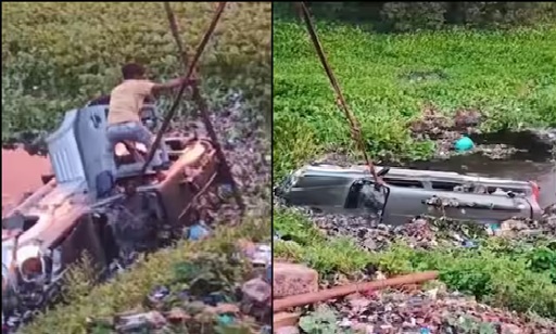 फतेहपुर में टायर फटने से प्रयागराज-कानपुर हाईवे किनारे खाई में पलटी कार, 4 की मौत, 5 घायल
