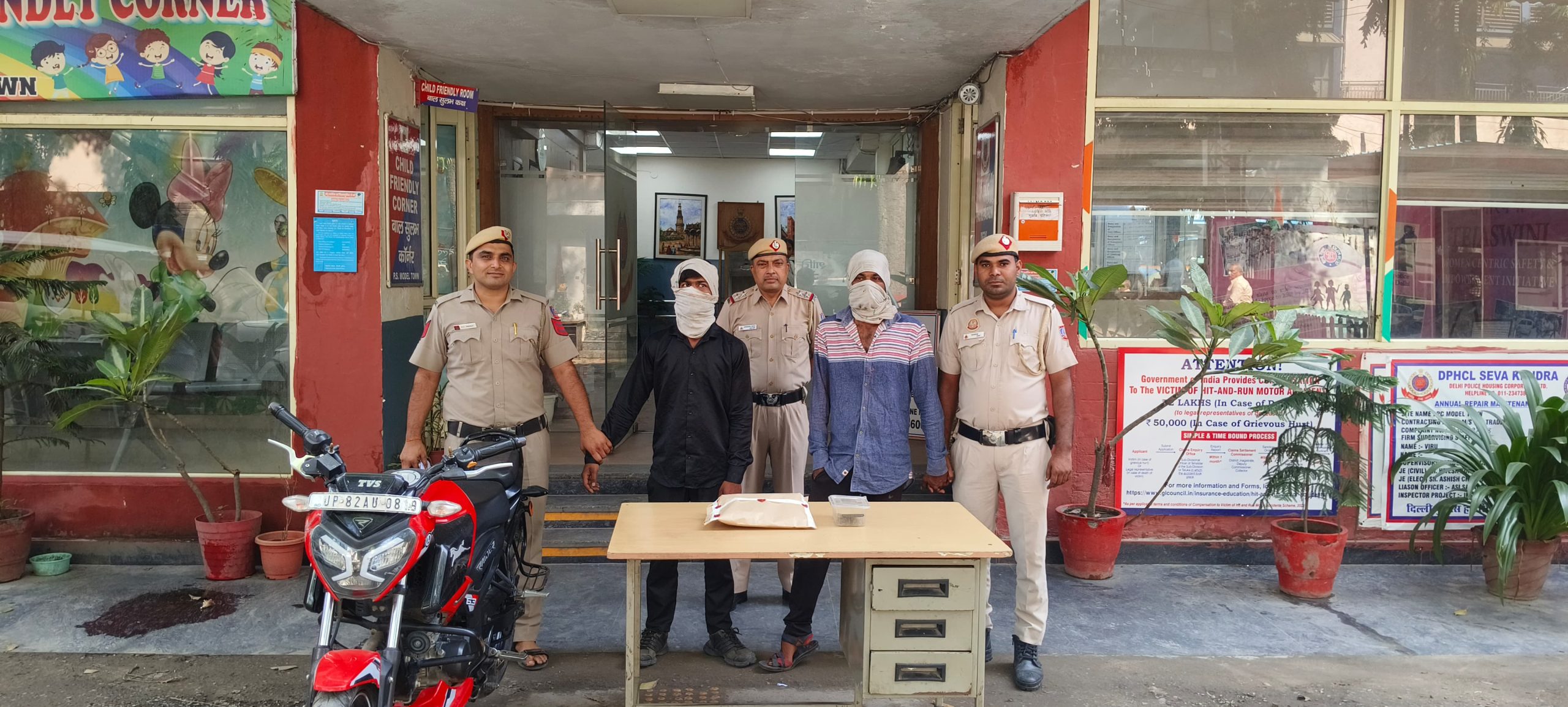 उत्तर-पश्चिम जिले के डीसीपी डीसीपी भीष्म सिंह ने बताया कि आठ अक्टूबर को दोपहर करीब 1:45 बजे मॉडल टाउन-III के डी पार्क के पास हुई। पेट्रोलिंग पर तैनात हेड कांस्टेबल हकीकत और कांस्टेबल नदीम ने देखा कि दो बाइक सवार भागने की कोशिश कर रहे हैं, जबकि एक व्यक्ति मदद के लिए चिल्ला रहा था। तुरंत पीछा कर दोनों को मोटरसाइकिल समेत पकड़ लिया गया। तलाशी में छीना गया बैग और 2,200 रुपये नकद बरामद हुए।