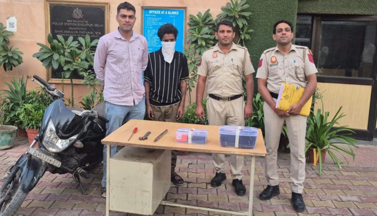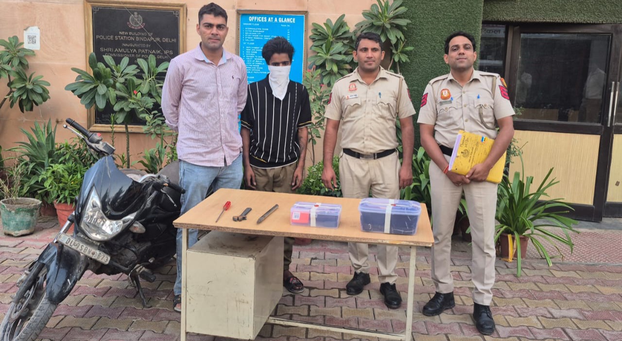 नई दिल्ली: दिल्ली के द्वारका की बिंदापुर पुलिस ने एक बार फिर अपराध पर अंकुश लगाते हुए कुख्यात चोर को सिर्फ 24 घंटे में पकड़ लिया। आरोपी सुब्रत गुप्ता उर्फ रिषु उर्फ टेढ़ा (20) 18 साल की उम्र के बाद 15 से ज्यादा अपराधों में शामिल रहा। पुलिस ने उसके पास से चोरी की मोटरसाइकिल, घरफोड़ी के औजार और नकदी-कीमती सामान बरामद किया।