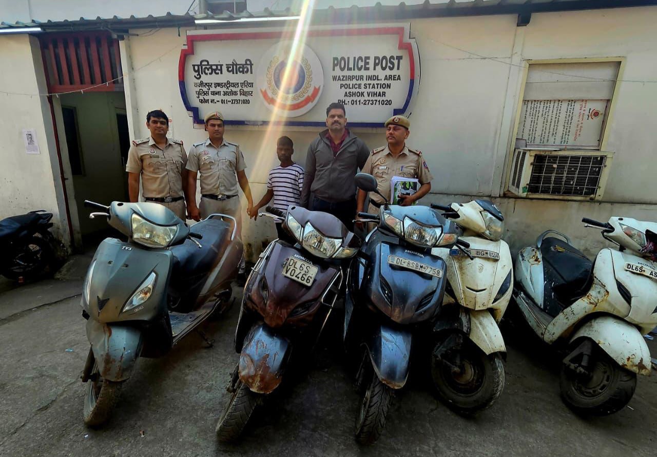 डीसीपी भीष्म सिंह ने बताया कि 8 नवंबर को एसआई रोहित चाहर की अगुवाई में टीम टिकोना पार्क के पास गश्त पर थे। तभी एक संदिग्ध स्कूटी सवार दिखा। पुलिस को देखते ही उसने यू-टर्न लेकर भागने की कोशिश की, लेकिन टीम ने घेराबंदी कर पकड़ लिया। स्कूटी चेक की तो पता चला कि रानी बाग थाने में दर्ज ई-एफआईआर के तहत चोरी की है। जोगी ने टूटते ही पांच और चोरी की स्कूटियों की लोकेशन बताई। राजा पार्क, बी-ब्लॉक से चार स्कूटियां बरामद हुईं।