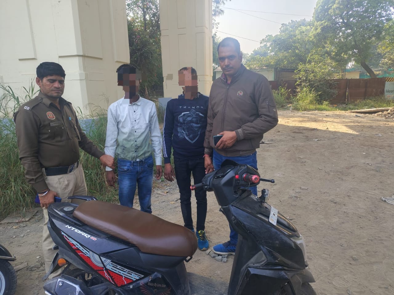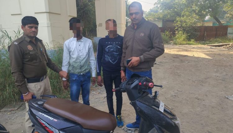 वेस्ट टू वंडर पार्क के पास स्नैचिंग की फिराक में घूमते दो बदमाश पुलिस के हत्थे चढ़े , स्कूटी और मोबाइल जब्त