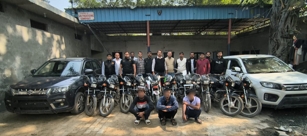 फरीदाबाद में वाहन चोरी गिरोह का पर्दाफाश, 20 मुकदमों वाला शातिर समेत तीन धराए, 10 बाइक-एक ब्रेजा बरामद