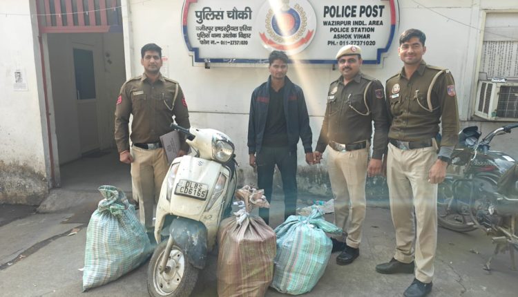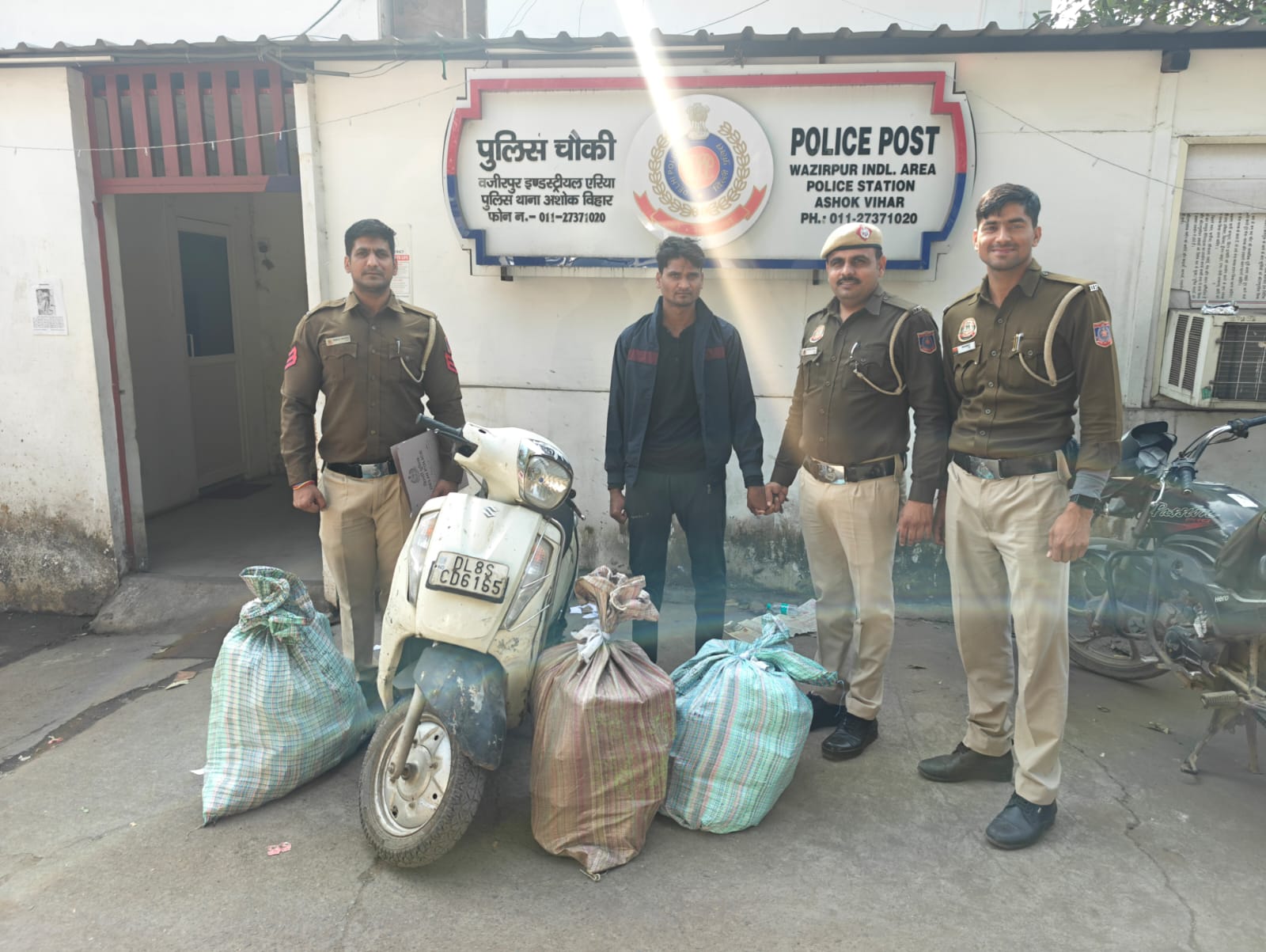 उत्तर-पश्चिम जिले के डीसीपी भीष्म सिंह ने बताया कि 28 नवंबर की शाम उदयम सिंह पार्क, WPIA के पास पुलिस पोस्ट की टीम को एक सफेद सुजुकी एक्सेस स्कूटी पर तीन भारी बोरियां बंधी दिखीं। जैसे ही पुलिस ने रोका, ड्राइवर सुभाष (25) घबरा कर झुग्गी क्लस्टर की तरफ भागने लगा। तेज स्पीड में स्कूटी फिसल गई और वह गिर पड़ा। SI रोहित चाहर की टीम ने फुर्ती दिखाते हुए उसे पकड़ लिया।