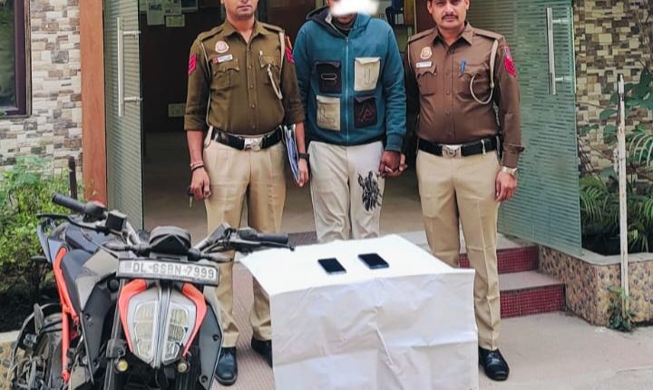 चोरी की बाइक पर सवार शातिर वाहन चोर धराया, दो लूटे हुए मोबाइल भी बरामद