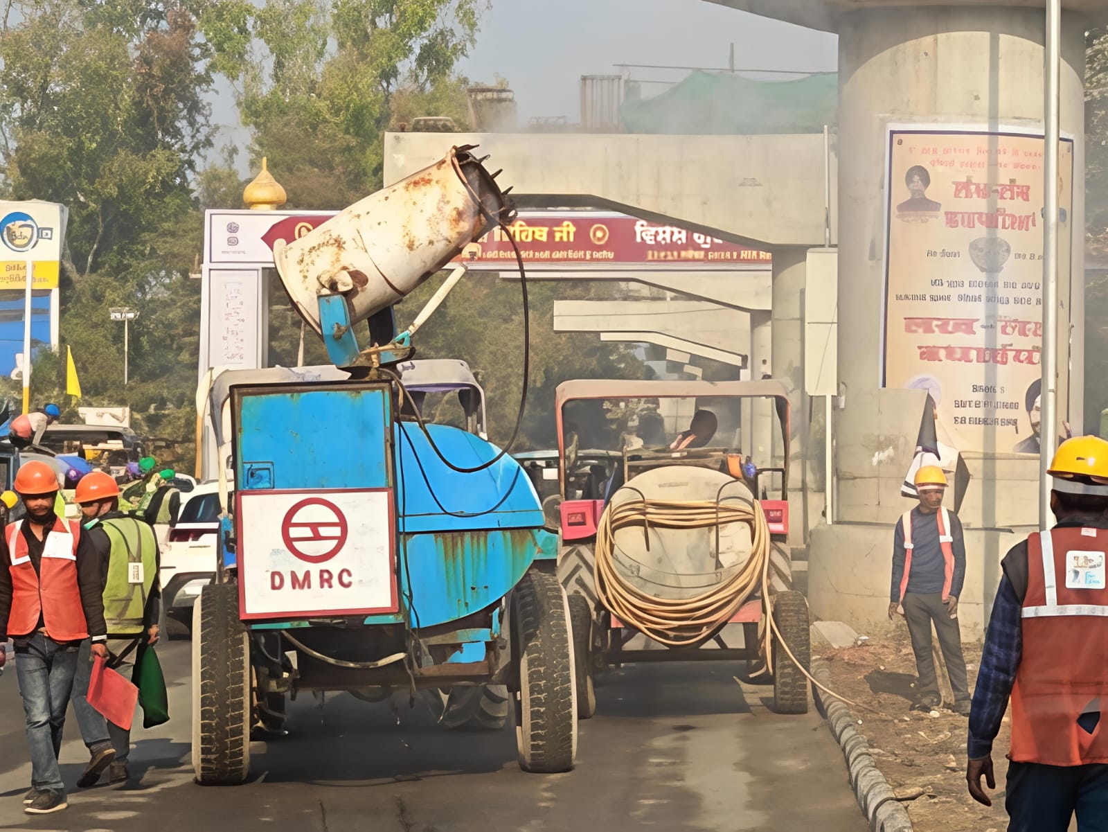 दिल्ली मेट्रो ने छेड़ा प्रदूषण के विरुद्ध युद्ध: 100 से ज्यादा एंटी-स्मॉग गन तैनात, सड़कों-फुटपाथों की सफाई की