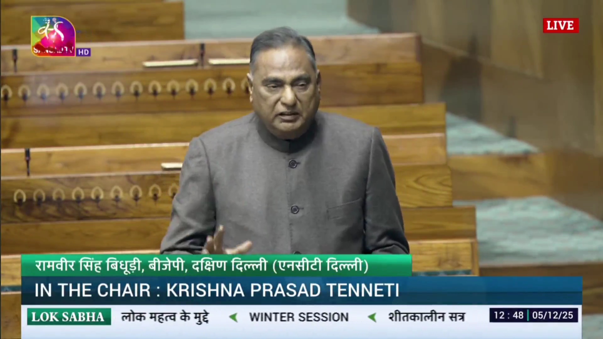 नई दिल्ली: दक्षिण दिल्ली से भाजपा सांसद रामवीर सिंह बिधूड़ी ने आज संसद में दिल्ली के हजारों व्यापारियों की आवाज बुलंद करते हुए केंद्र सरकार से तुरंत कार्रवाई की मांग की है। उन्होंने कहा कि दिल्ली नगर निगम ने वर्षों पहले 351 ऐसी सड़कों की पहचान कर ली थी जहां 50-70 फीसदी से ज्यादा दुकानें चल रही हैं और इनका लैंडयूज कमर्शियल या मिक्स्ड लैंड यूज में बदलने की सिफारिश सरकार को भेजी गई थी, लेकिन आज तक कोई फैसला नहीं हुआ। नतीजा यह है कि डिफेंस कॉलोनी जैसी बड़ी मार्केट्स समेत पूरे दिल्ली में लगभग 13 हजार दुकानें सीलिंग के डर से ताले लगाकर पड़ी हैं और व्यापारी परिवार समेत सड़क पर आ चुके हैं।