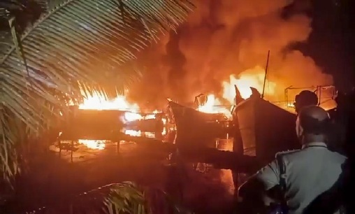 पुलिस के एक अधिकारी ने बताया, ‘‘प्रारंभिक आकलन के अनुसार लगभग 10 नौकाएं पूरी तरह जलकर खाक हो गईं, आग लगने के सटीक कारण का अभी पता नहीं चल पाया है लेकिन संदेह है कि गैस सिलेंडर में विस्फोट के कारण यह घटना हुई।’’
