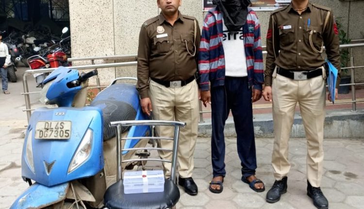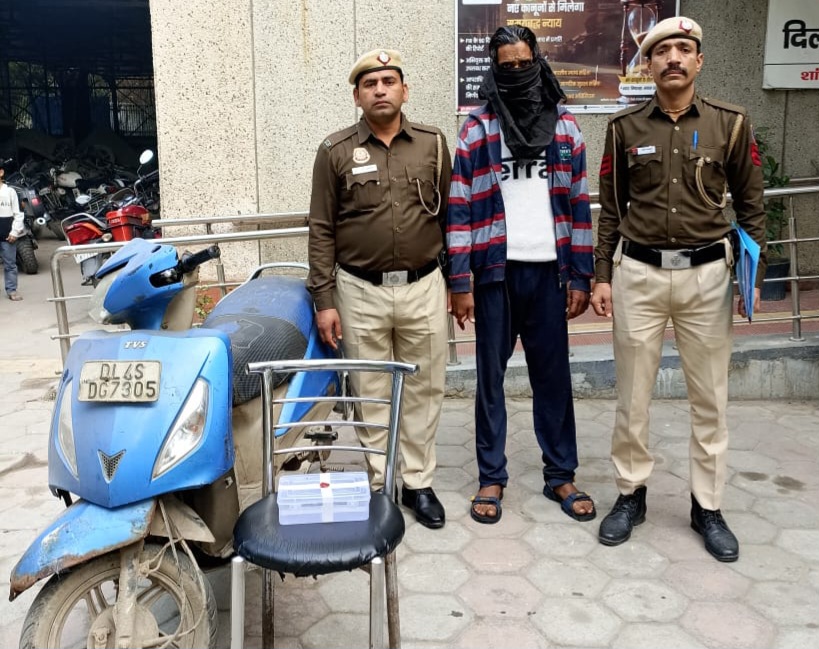 पश्चिम जिले के डीसीपी दराड़े शरद भास्कर ने बताया कि 13 दिसंबर को शाम करीब 8:15 बजे मादीपुर पुलिस चौकी की पेट्रोलिंग टीम झील पार्क मादीपुर के पास रूटीन ड्यूटी पर थी। टीम ने पासचिम पुरी की तरफ से आ रहे एक संदिग्ध व्यक्ति को स्कूटी पर देखा। पुलिस को देखते ही आरोपी ने अचानक यू-टर्न लेकर भागने की कोशिश की, लेकिन पुलिस की मुस्तैदी से उसे थोड़ी दूरी पर ही दबोच लिया गया। तलाशी लेने पर आरोपी के पास से एक बटन ऑपरेटेड चाकू बरामद हुआ। पूछताछ में उसने अपना नाम सरवन उर्फ पूरी बताया। उसके पास से बरामद स्कूटी को जिपनेट पर चेक किया गया तो वह ख्याला थाने से चोरी की पाई गई।