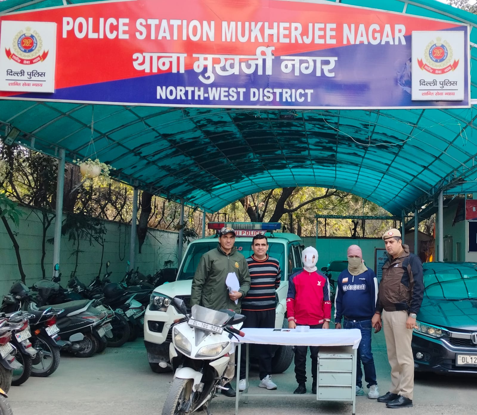 मुखर्जी नगर में गश्त के दौरान दो बदमाश गिरफ्तार: चोरी की बाइक, मोबाइल और चाकू बरामद
