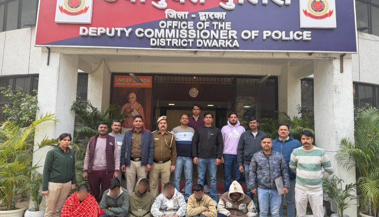 डीसीपी अंकित सिंह ने बताया कि गिरफ्तार नौ आरोपियों में संजय (27) पुत्र मुन्ना लाल, गोविंद कुमार (29) पुत्र सुभाष कुमार, रमेश (70) पुत्र योगेश, विकास उर्फ गोलू (39) पुत्र राजपाल, संगीता (36) पत्नी विशाल सिंह, विशाल सिंह (38) पुत्र सुरजीत, गजेंद्र उर्फ टिन्नू पुत्र सतबीर, विनोद उर्फ गुड्डू (26) पुत्र भारत लाल और नाइजीरियन नागरिक सैमसन उर्फ चेज़ (28) पुत्र ओहाजुरुइके शामिल हैं। इनसे बरामदगी में 33.244 किलोग्राम गांजा, 62 ग्राम एम्फेटामाइन, 13 एविल इंजेक्शन, 32 ब्यूप्रेनॉर्फिन टैबलेट्स, 105 क्वार्टर अवैध शराब, एक चाकू और ड्रग पैडलर्स से 3,64,040 रुपये नकद शामिल हैं। इस कार्रवाई में अलग-अलग थानों में 8 मुकदमे दर्ज किए गए, जिनमें NDPS एक्ट और दिल्ली एक्साइज एक्ट की धाराएं लगाई गईं। मुख्य केस छावला, उत्तम नगर, डाबरी, मोहन गार्डन और द्वारका साउथ थानों में दर्ज हैं। गिरोह के आगे-पीछे के लिंक को जोड़ने के लिए जांच जारी है और सर्च ऑपरेशन अभी भी चल रहा है।