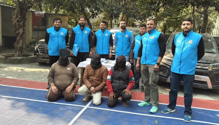 पुष्प विहार में अवैध हथियारों के साथ ऑटो लिफ्टर गिरोह धराया, तीन लग्जरी गाड़ियां के साथ तीन गिरफ्तार