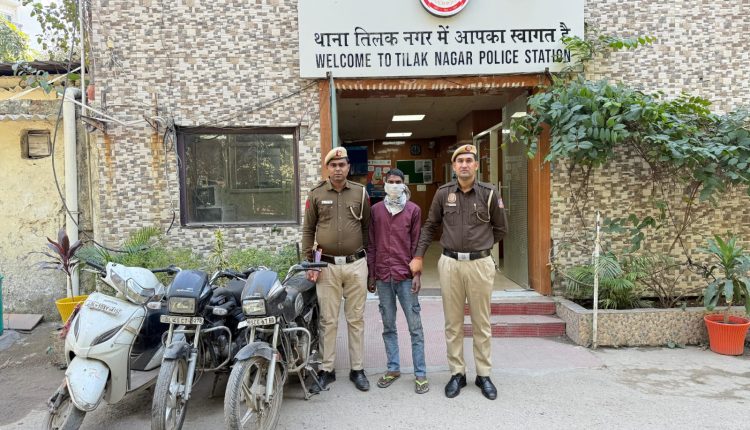 तिलक नगर में गश्त के दौरान चोरी की स्कूटी पर सवार शातिर अपराधी पकड़ा, तीन चोरी के दोपहिया वाहन बरामद