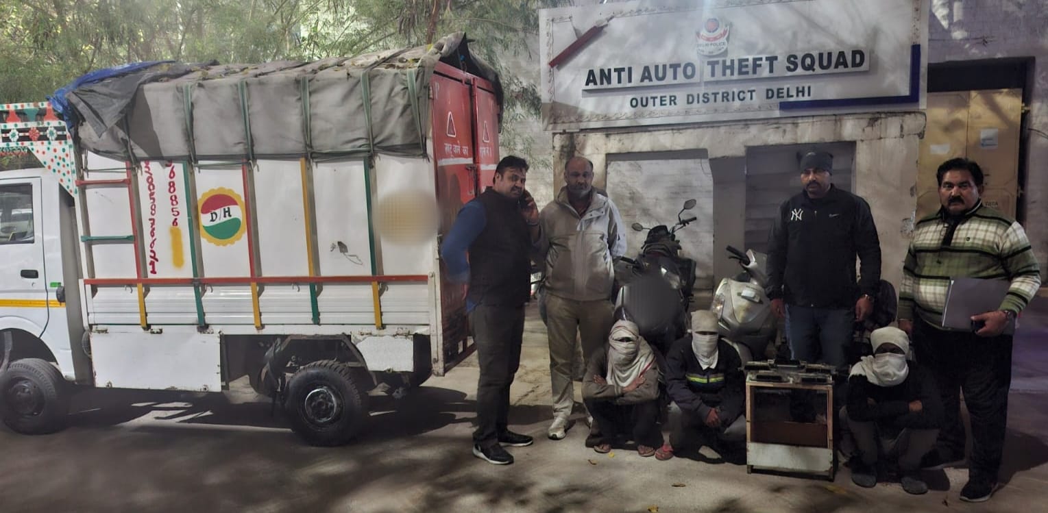 नई दिल्ली: दिल्ली पुलिस के आउटर जिले की एंटी ऑटो थेफ्ट स्क्वॉड (एएटीएस) ने अंतरराज्यीय वाहन चोरी के एक बड़े सिंडिकेट का पर्दाफाश कर दिया। टीम ने चार शातिर ऑटो लिफ्टरों के साथ मेवात में वाहन तोड़ने वाली यूनिट के मालिक को भी धर दबोचा। आरोपियों के पास से तीन चोरी की स्कूटी, दो मोटरसाइकिल, एक चोरी का मिनी ट्रक, पांच ट्रकों के ईसीएम और अपराध में इस्तेमाल एक अन्य मिनी ट्रक बरामद कर लिया गया। इनकी गिरफ्तारी से दिल्ली-एनसीआर के छह वाहन चोरी के मामले सुलझ गए।