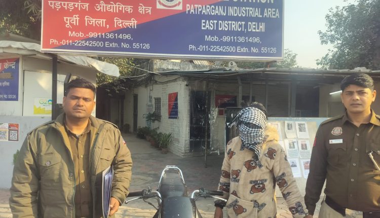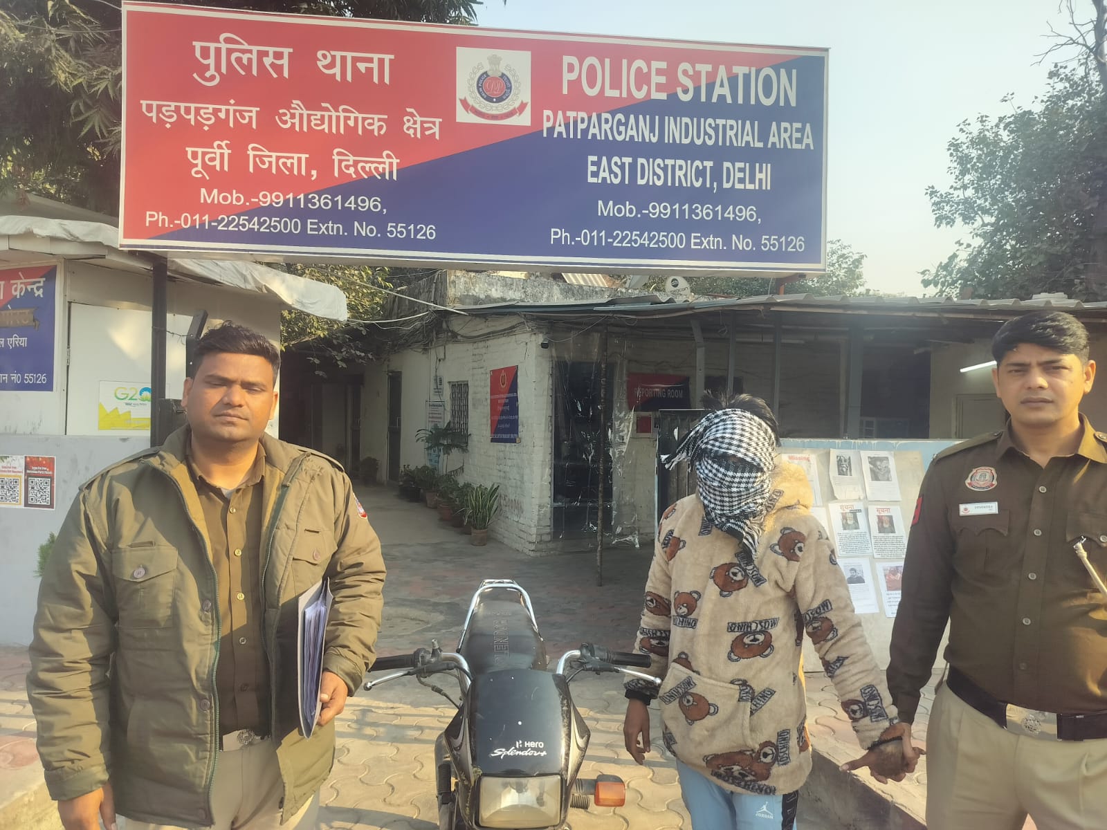 ईस्ट जिले के डीसीपी अभिषेक धानिया ने बताया कि 25 दिसंबर को सुबह करीब 6 बजे कांस्टेबल कपिल आनंद विहार में शौचालय के निकट गश्त पर थे। तभी उन्होंने दो युवकों को हीरो स्प्लेंडर मोटरसाइकिल पर संदिग्ध हालत में आते देखा। पुलिस को देखते ही दोनों भागने की कोशिश करने लगे और गाजियाबाद की तरफ भागे। कांस्टेबल कपिल ने पीछा किया तो अचानक सामने आए वाहन से बचने में मोटरसाइकिल फिसल गई और गिर पड़ी। इस दौरान पिलियन राइडर भाग निकला, जबकि राइडर को मौके पर ही दबोच लिया गया।