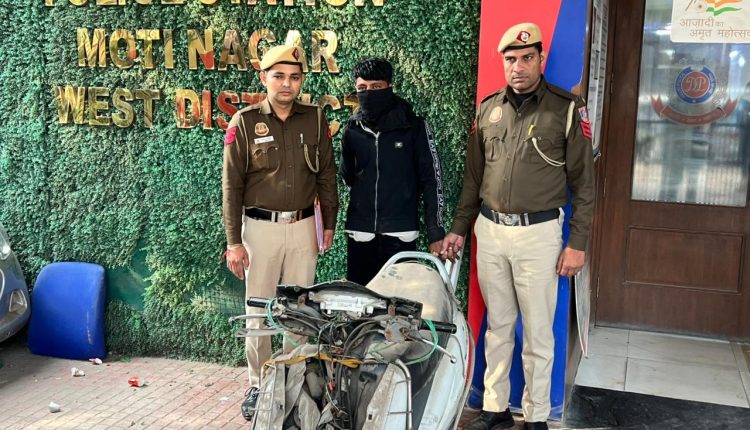 मोती नगर थाना पुलिस ने पकड़ा शातिर चोर: चोरी की स्कूटी व औजार बरामद, छह पुराने केस हल