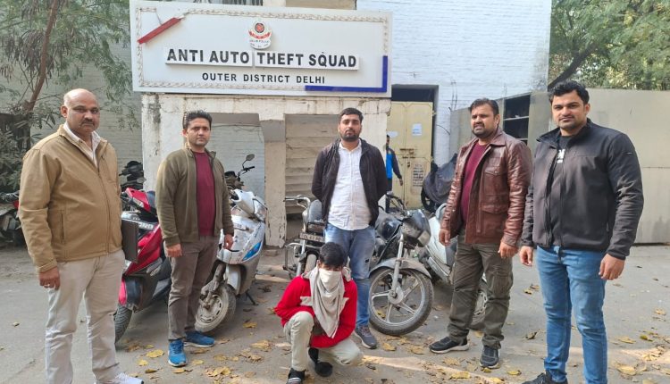 बाहरी दिल्ली की एंटी ऑटो थेफ्ट टीम ने ऑटो लिफ्टर को दबोचा, 3 स्कूटी और 2 मोटरसाइकिल बरामद