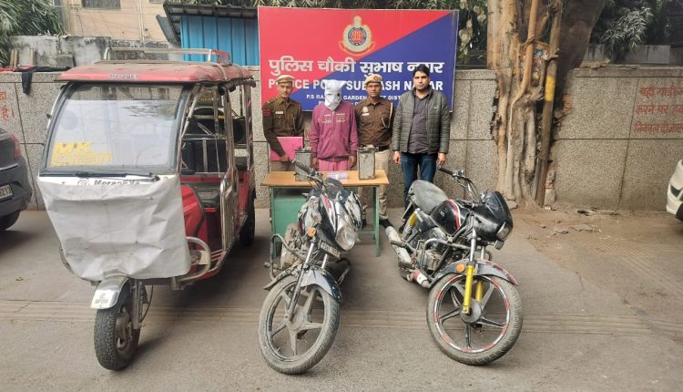 राजौरी गार्डन थाना पुलिस ने सक्रिय चोर को दबोचा, बटन छुरी, दो मोटरसाइकिल और ई-रिक्शा बरामद