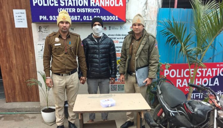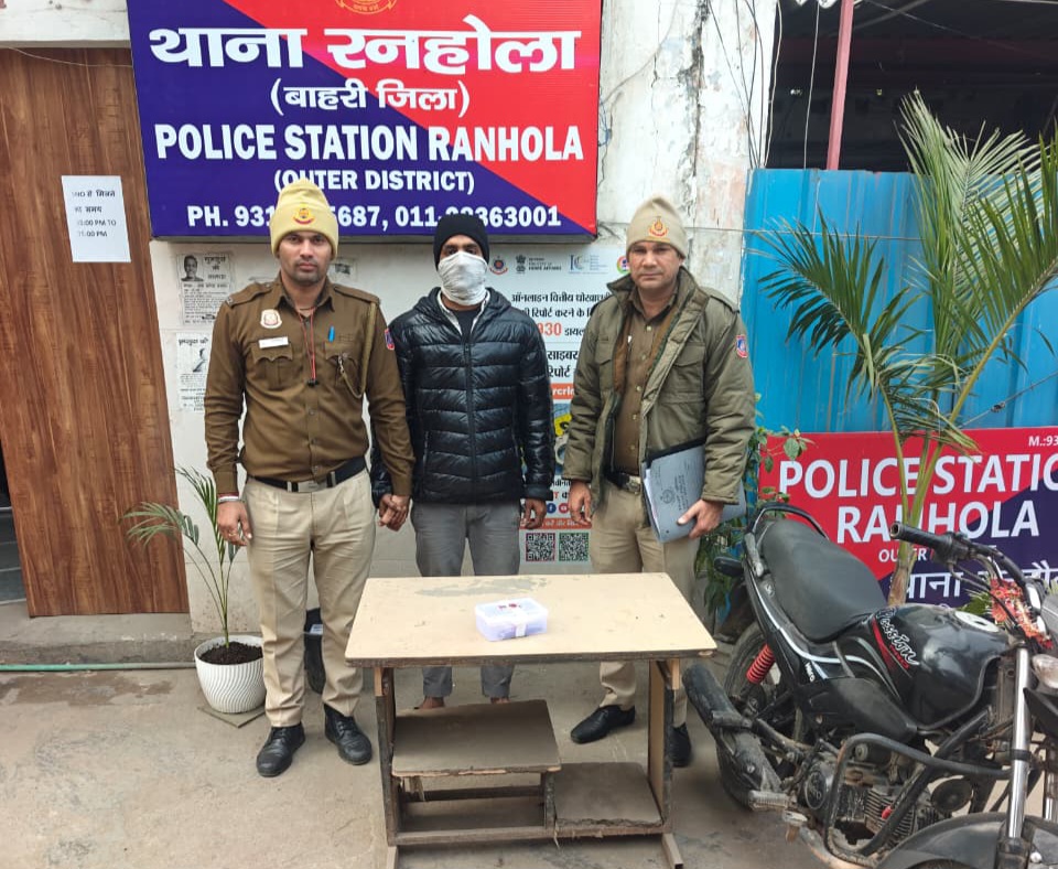बाहरी जिले के डीसीपी सचिन शर्मा ने बताया कि 3 जनवरी को रान्होला क्षेत्र के बापरोला में बाइक पटरोलिंग पर तैनात हेड कांस्टेबल नवीन और कांस्टेबल नरेंद्र की टीम गंदा नाला के पास पहुंची। वहां एक व्यक्ति मोटरसाइकिल पर संदिग्ध हालत में दिखा। पुलिस ने उसे रुकने का इशारा किया, लेकिन आरोपी ने यू-टर्न लेकर भागने की कोशिश की। सतर्क टीम ने तुरंत पीछा किया और थोड़ी ही दूरी पर उसे दबोच लिया।