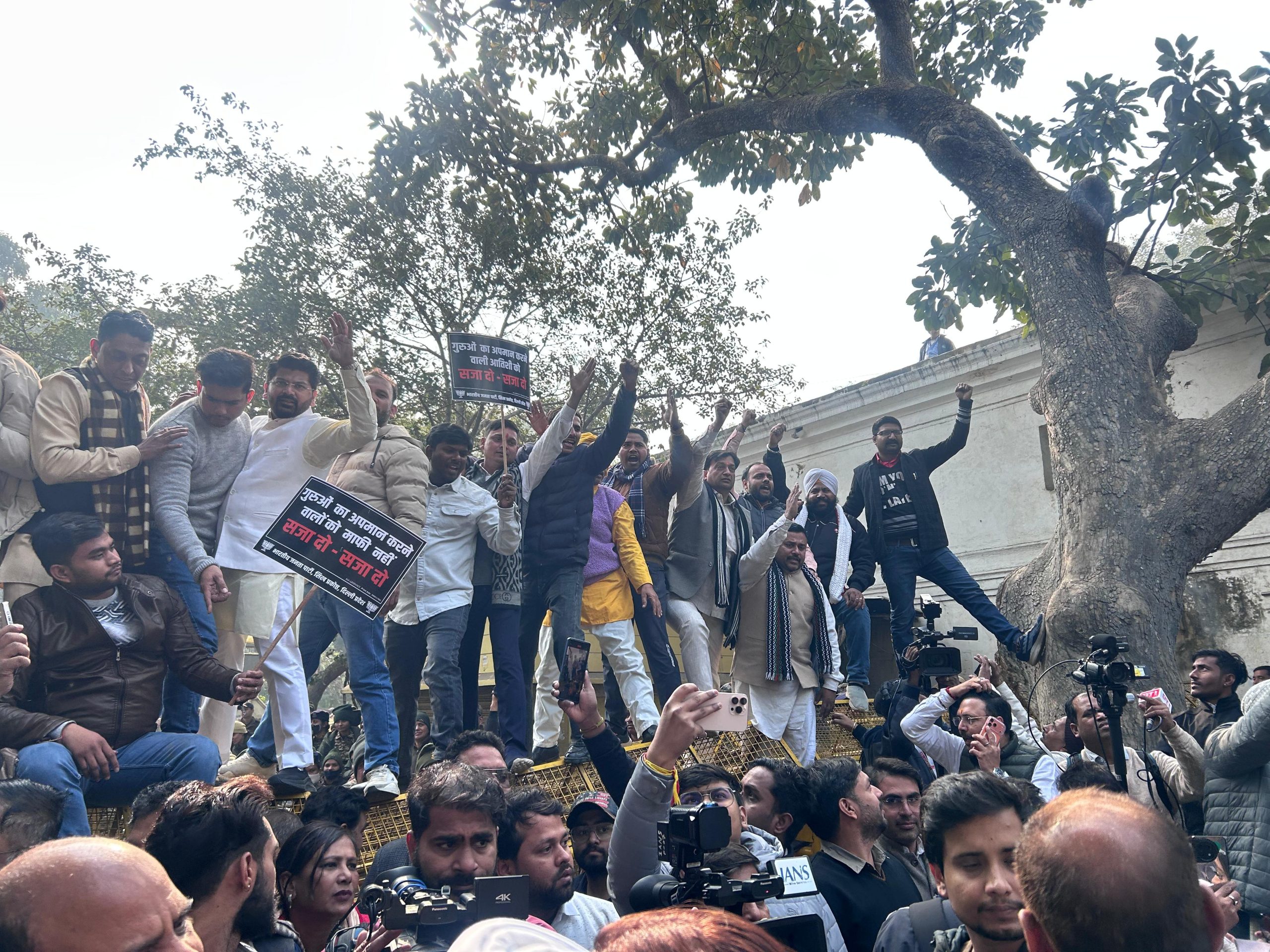 आतिशी के गुरु तेग बहादुर पर कथित अपमानजनक बयान के खिलाफ भाजपा का AAP मुख्यालय पर प्रदर्शन