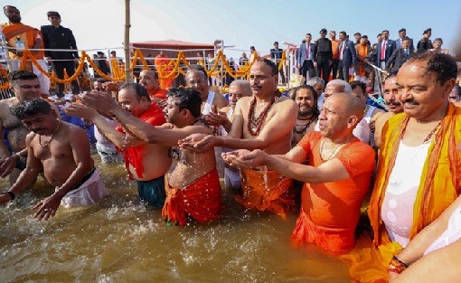 प्रयागराज पहुंचे मुख्यमंत्री योगी आदित्यनाथ , त्रिवेणी संगम में लगाई आस्था की डुबकी, माघ मेले की समीक्षा की