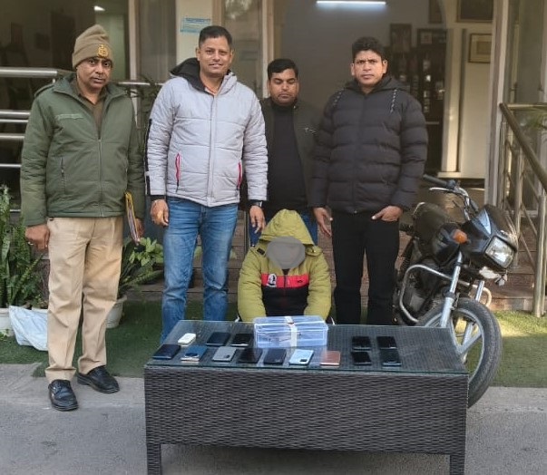 चोरी के मोबाइल फोन का रिसीवर छेनू गैंग का सदस्य गिरफ्तार, देशी पिस्तौल,14 फोन और मोटरसाइकिल बरामद