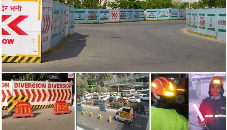मजदूरों की सुरक्षा के लिए उनके हेलमेट पर रिफ्लेक्टिव टेप और हाई-विजिबिलिटी जैकेट अनिवार्य की गई है। दिल्ली मेट्रो ने इन सुरक्षा मानकों को ठेकेदारों के लिए बाध्यकारी बनाया है, जो इंडियन रोड कांग्रेस के दिशानिर्देशों के अनुरूप हैं। भीड़भाड़ वाले शहरी क्षेत्रों में इस तरह के कड़े सुरक्षा उपायों के कारण ही अब तक मेट्रो निर्माण स्थलों के पास आवाजाही सुरक्षित और घटनारहित रही है।