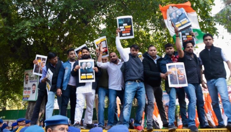 नई दिल्ली: भारतीय युवा कांग्रेस ने रविवार को केंद्रीय बजट और ‘एपस्टीन फाइल्स’ के मुद्दे पर केंद्र सरकार के खिलाफ जोरदार विरोध प्रदर्शन किया। राष्ट्रीय अध्यक्ष उदय भानु चिब के नेतृत्व में कार्यकर्ताओं ने दिल्ली की सड़कों पर उतरकर मोदी सरकार के खिलाफ नारेबाजी की। प्रदर्शन के दौरान युवा कांग्रेस के कार्यकर्ता रायसीना रोड की ओर कूच कर रहे थे, जिन्हें दिल्ली पुलिस ने बैरिकेडिंग लगाकर रोक दिया।