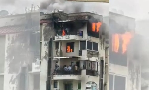 द्वारका में इमारत में लगी आग, व्यक्ति ने लगाई छलांग