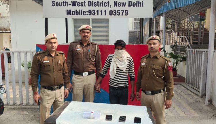 नई दिल्ली: दिल्ली के दक्षिण-पश्चिम जिला पुलिस के थाना किशनगढ़ की टीम ने इलाके में अवैध हथियारों और स्ट्रीट क्राइम पर लगाम कसते हुए एक शातिर अपराधी को गिरफ्तार किया है, जिसे दिल्ली से तड़ीपार घोषित किया गया था। पकड़े गए आरोपी की पहचान राजू (25) निवासी मोती लाल नेहरू कैंप के रूप में हुई है। पुलिस ने आरोपी के कब्जे से एक अवैध बटनदार चाकू और तीन चोरी के मोबाइल फोन बरामद किए हैं। आरोपी राजू पर पहले से ही चोरी और आर्म्स एक्ट के 9 से अधिक आपराधिक मामले दर्ज हैं।