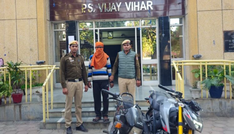 नई दिल्ली: दिल्ली के रोहिणी जिला पुलिस द्वारा चलाए जा रहे ‘ऑपरेशन पराक्रम’ के तहत विजय विहार थाना टीम ने एक शातिर चोर को गिरफ्तार करने में सफलता हासिल की है। पुलिस ने आरोपी के कब्जे से चोरी की दो मोटरसाइकिलें बरामद की हैं। पकड़े गए आरोपी की पहचान वरुण कुमार झा के रूप में हुई है, जो पहले भी आर्म्स एक्ट जैसे गंभीर मामलों में संलिप्त रहा है।