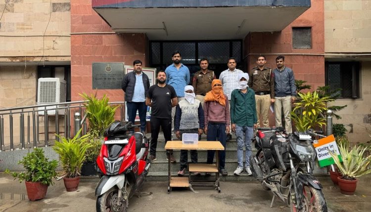 नई दिल्ली: दिल्ली के रोहिणी जिला पुलिस की बुध विहार थाना टीम ने ‘ऑपरेशन पराक्रम’ के तहत मुस्तैदी दिखाते हुए इलाके के एक कुख्यात हिस्ट्रीशीटर समेत तीन शातिर झपटमारों को गिरफ्तार किया है। पुलिस ने इनके कब्जे से छीना गया एक वीवो मोबाइल फोन और चोरी के दो दोपहिया वाहन बरामद किए हैं। गिरफ्तार आरोपियों की पहचान हिस्ट्रीशीटर शैलेंद्र उर्फ सुरेंद्र, हैप्पी उर्फ मोहित और अजय उर्फ हेतराम के रूप में हुई है। इस गिरोह की गिरफ्तारी से पुलिस ने झपटमारी और चोरी के कुल 5 मामलों को सुलझाने का दावा किया है।