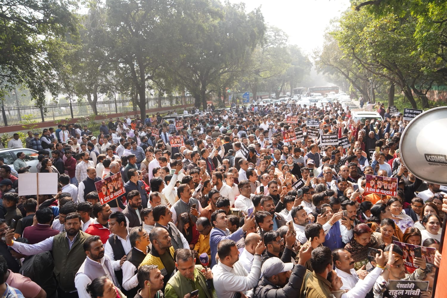 प्रदर्शनकारियों को संबोधित करते हुए वीरेन्द्र सचदेवा ने बेहद कड़े लहजे में कहा कि एआई समिट किसी दल का नहीं, बल्कि पूरे भारत राष्ट्र का गौरवशाली कार्यक्रम था। उन्होंने कहा, “जब पूरा विश्व भारत की नवाचार क्षमता और डिजिटल क्रांति का लोहा मान रहा है, ऐसे समय में वहां घुसकर हंगामा करना सीधा-सीधा राष्ट्रद्रोह है।” सचदेवा ने आरोप लगाया कि कांग्रेस अपनी नकारात्मक राजनीति के चलते देशहित को भूल चुकी है और उसकी यह मानसिकता संसद से लेकर सड़कों तक भारत को बदनाम करने की कोशिश करती रही है।