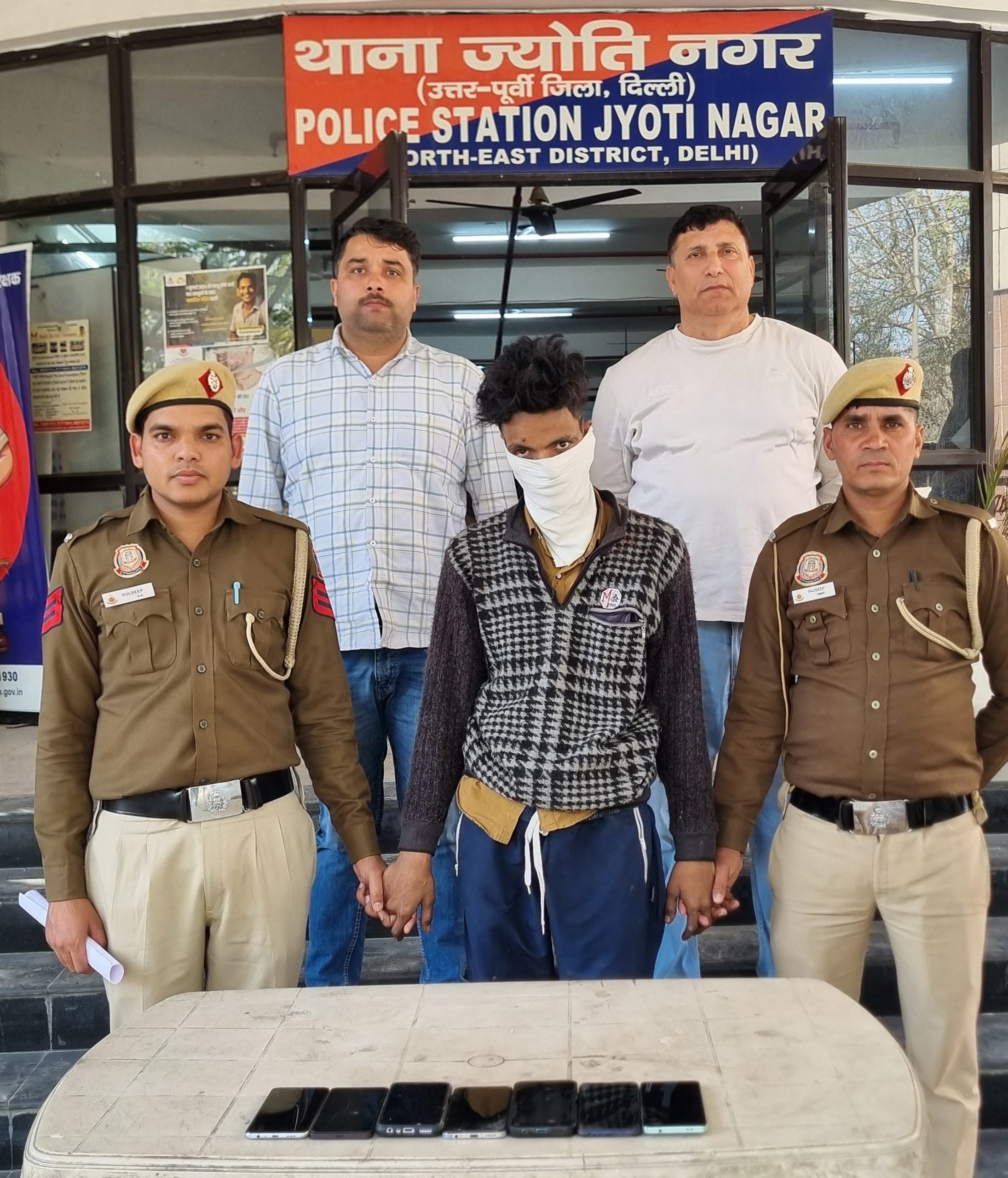 वारदात 21 फरवरी की आधी रात की है, जब अशोक नगर निवासी विनायक शर्मा (23) 100 फुटा रोड से गुजर रहे थे। तभी स्कूटी सवार जाकी अली ने उनका मोबाइल झपट लिया और मौजपुर रेड लाइट की ओर भागने लगा। विनायक ने हिम्मत नहीं हारी और एक राहगीर की मदद से आरोपी का पीछा कर उसे दबोच लिया। सूचना मिलते ही ज्योति नगर पुलिस मौके पर पहुंची और आरोपी को हिरासत में ले लिया। तलाशी के दौरान उसकी स्कूटी की डिग्गी से छह अन्य मोबाइल फोन मिले, जिनमें से दो फोन पहले से दर्ज चोरी के मामलों से जुड़े पाए गए।