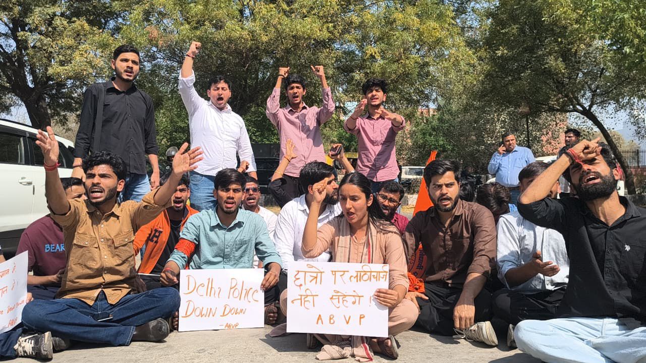 डीडीयू कॉलेज के छात्रों पर लाठीचार्ज के विरोध में अभाविप का प्रदर्शन, किया द्वारका उत्तर थाने का घेराव