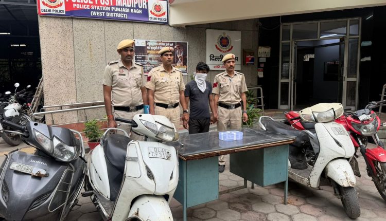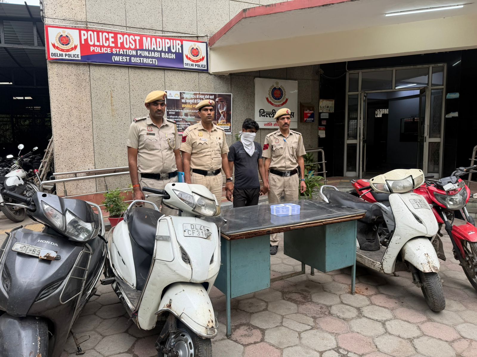 नई दिल्ली: दिल्ली पुलिस के पश्चिमी जिला अंतर्गत पंजाबी बाग थाना की मादीपुर पुलिस चौकी ने वाहन चोरी और झपटमारी की वारदातों पर अंकुश लगाते हुए एक शातिर अपराधी को गिरफ्तार किया है। पुलिस ने आरोपी के कब्जे से चोरी की तीन स्कूटी, एक चोरी की मोटरसाइकिल और एक अवैध बटनदार चाकू बरामद किया है। गिरफ्तार आरोपी की पहचान रोहित (27 वर्ष), निवासी बेगूसराय (बिहार) के रूप में हुई है। इस गिरफ्तारी के साथ पुलिस ने पंजाबी बाग और प्रेम नगर थाना क्षेत्रों में दर्ज वाहन चोरी और स्नैचिंग के कुल 9 मामलों को सुलझाने में बड़ी सफलता हासिल की है।