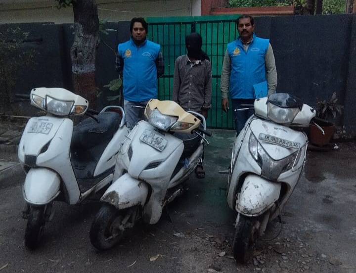 पंजाबी बाग में गश्त के दौरान पुलिस ने तीन चोरी की स्कूटी के साथ शातिर वाहन चोर को दबोचा, 3 मामले सुलझे