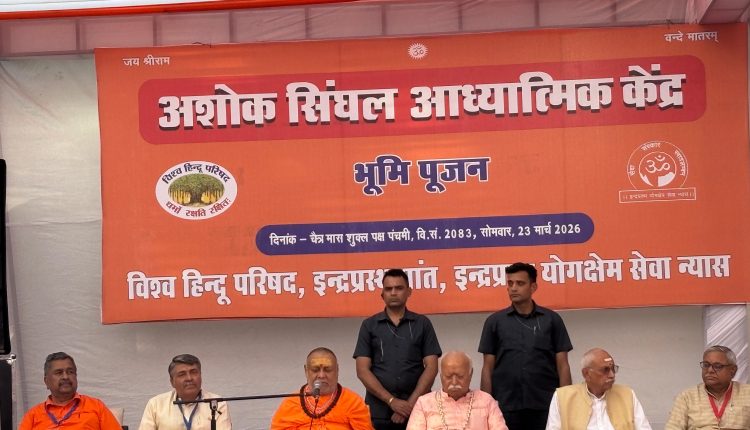 नई दिल्ली: दिल्ली के झंडेवाला इलाके में सोमवार को विश्व हिंदू परिषद (विहिप) के इंद्रप्रस्थ प्रांत के नवीन कार्यालय का भूमि पूजन कार्यक्रम पूरी भव्यता और गरिमा के साथ संपन्न हुआ। इस प्रस्तावित कार्यालय का नाम महान जननायक और विहिप के पूर्व अध्यक्ष के सम्मान में “अशोक सिंघल आध्यात्मिक केंद्र” रखा गया है। कार्यक्रम में मुख्य मार्गदर्शक के रूप में उपस्थित राष्ट्रीय स्वयंसेवक संघ के सरसंघचालक मोहन भागवत ने समाज को अपने धर्म के संरक्षण और संवर्धन के प्रति सदैव सजग रहने का आवाहन किया। इस अवसर पर संतों और वरिष्ठ पदाधिकारियों की उपस्थिति ने कार्यक्रम को आध्यात्मिक ऊर्जा से भर दिया।