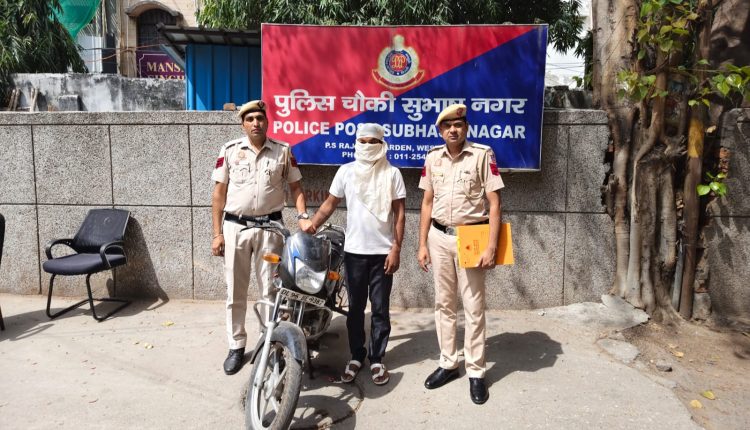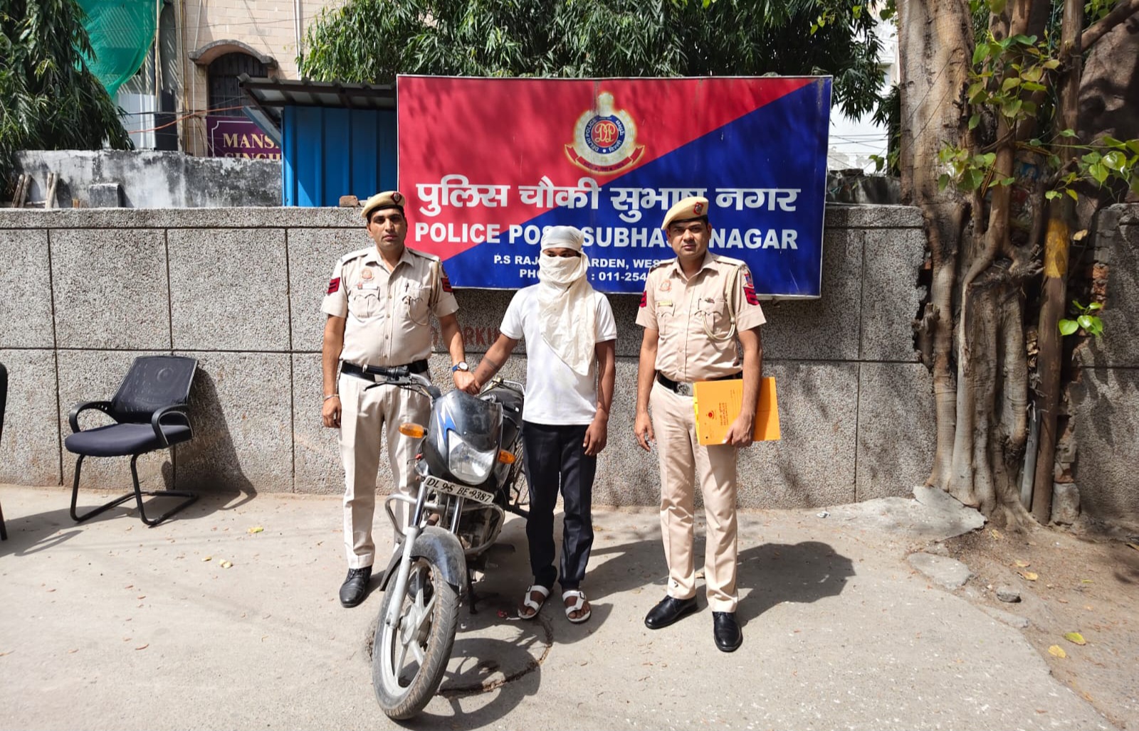 राजौरी गार्डन पुलिस ने बेरी वाला बाग से चोरी की बाइक के साथ रेस्टोरेंट का कर्मचारी को किया गिरफ्तार