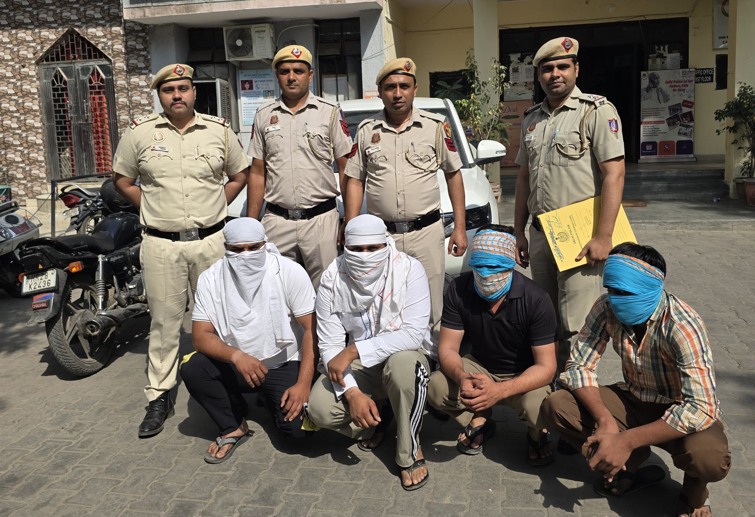नई दिल्ली: दिल्ली के पूर्वी जिले की शकरपुर थाना पुलिस ने तकनीक का सहारा लेकर सड़क पर लूटपाट और जबरन वसूली करने वाले एक संगठित गिरोह का भंडाफोड़ किया है। पुलिस ने बैंक रिकवरी एजेंट बनकर लोगों को डराने और उनसे पैसे ऐंठने वाले चार आरोपियों प्रिंस (22 वर्ष), आकाश उर्फ अक्कू (25 वर्ष), शिवम (23 वर्ष) और टीटू (22 वर्ष) को गिरफ्तार किया है। इनके कब्जे से वारदात में इस्तेमाल एक सफेद ब्रेजा कार और पांच मोबाइल फोन बरामद किए गए हैं। यह गिरोह एक मोबाइल एप्लीकेशन के जरिए उन वाहनों को चिन्हित करता था जिनकी ईएमआई लंबित होती थी।