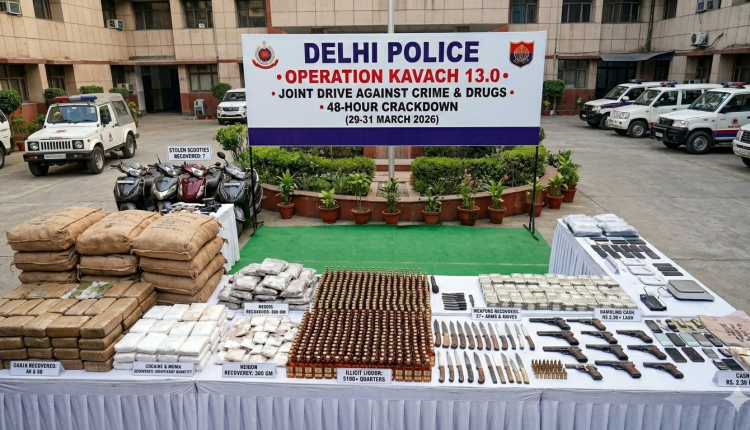 नई दिल्ली: पुलिस मुख्यालय के निर्देशों का कड़ाई से पालन करते हुए, सेंट्रल जिला पुलिस ने ‘ऑपरेशन कवच 13.0’ के तहत 48 घंटे का एक सघन और व्यापक अभियान चलाकर अपराधियों के कमर तोड़ दी है। 29 मार्च की शाम से 31 मार्च 2026 की शाम तक चले इस निरंतर अभियान में जिले के सभी 15 थानों, साइबर थाना और विशेष इकाइयों (स्पेशल स्टाफ, एंटी-नारकोटिक्स सेल, एएटीएस) की 110 टीमों ने कुल 283 छापेमारी की। इस मैराथन कार्रवाई के दौरान पुलिस ने विभिन्न अपराधों में संलिप्त 452 व्यक्तियों को गिरफ्तार किया, जबकि निवारक धाराओं के तहत 1,930 लोगों को हिरासत में लिया गया।