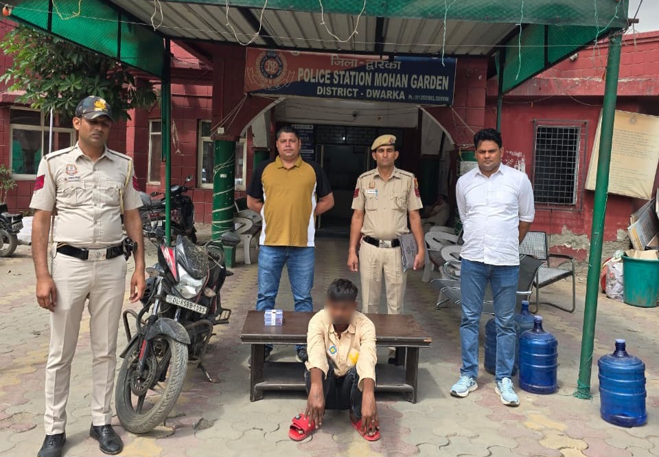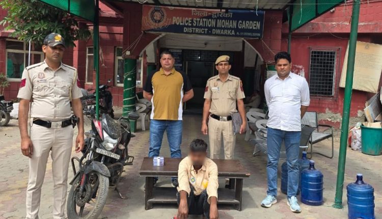 मोहन गार्डन इलाके से शातिर लुटेरा गिरफ्तार; चोरी की बाइक और चाकू बरामद