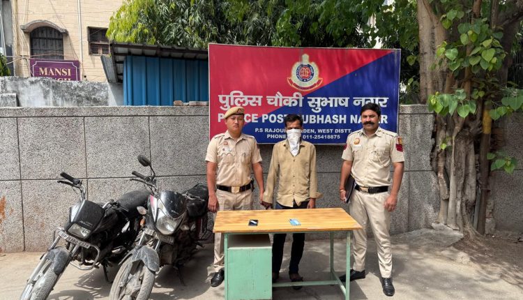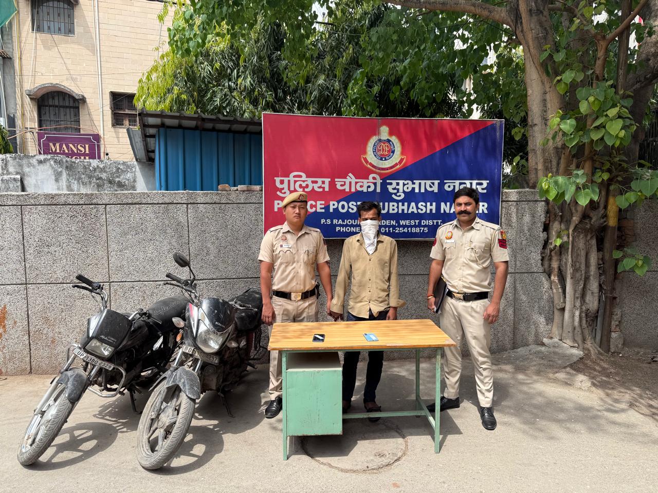 नई दिल्ली: दिल्ली पुलिस के पश्चिमी जिला के अंतर्गत सुभाष नगर चौकी (थाना राजौरी गार्डन) की टीम ने अपराधिक गतिविधियों पर अंकुश लगाने के लिए चलाए जा रहे अभियान के तहत एक शातिर अपराधी विक्की सुनार उर्फ खाली (22 वर्ष) को गिरफ्तार किया है। पुलिस ने आरोपी के कब्जे से चोरी की दो मोटरसाइकिलें और दो चोरी के एंड्रॉइड मोबाइल फोन (रेडमी नोट 9 प्रो और रियलमी) बरामद किए हैं। आरोपी की गिरफ्तारी से तिलक नगर, सुल्तानपुरी, उत्तम नगर और राजौरी गार्डन थानों में दर्ज चोरी के कुल चार मामलों को सुलझा लिया गया है। विक्की सुनार पूर्व में भी वाहन चोरी के 4 अन्य मामलों में संलिप्त रहा है।