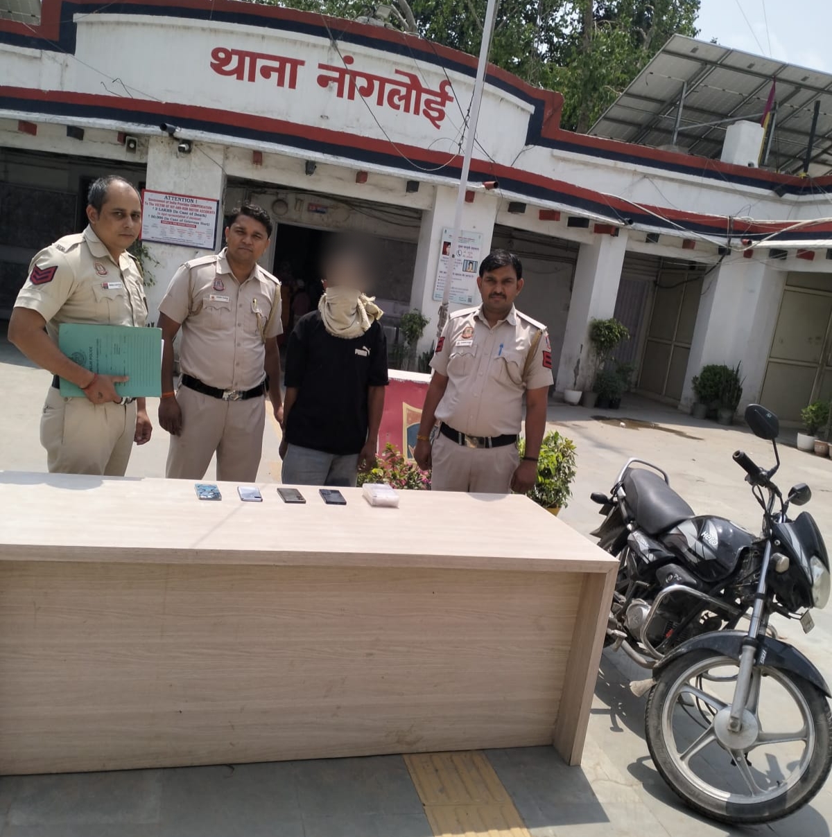 पुलिस को देख यू-टर्न लेकर भाग रहा था, नांगलोई पुलिस ने घेराबंदी कर दबोचा, चोरी की बाइक और 4 मोबाइल बरामद