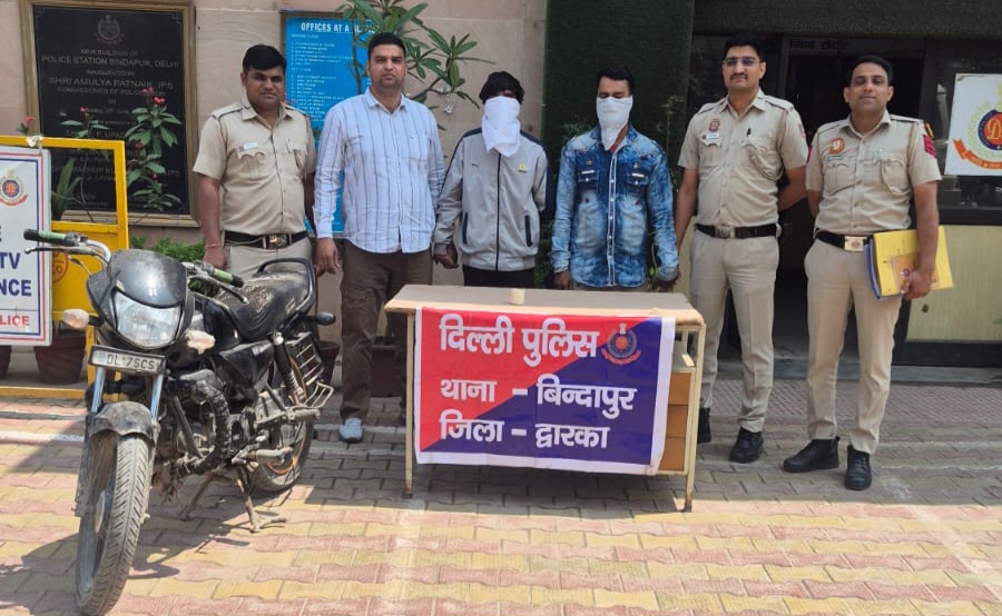 नई दिल्ली: दिल्ली के द्वारका जिले की बिंदापुर थाना पुलिस ने स्नैचिंग की वारदात को सुलझाते हुए दो शातिर आरोपियों को गिरफ्तार किया है, जिनके कब्जे से छीनी गई सोने की चेन का आधा हिस्सा और अपराध में इस्तेमाल की गई मोटरसाइकिल बरामद की गई है। गिरफ्तार आरोपियों की पहचान चंदन (36 वर्ष) निवासी चंचल पार्क, रनहोला और उसके साले रोहन सेठ (22 वर्ष) निवासी निहाल विहार के रूप में हुई है। पुलिस ने इस मामले को सुलझाने के लिए घटना स्थल से लेकर आरोपियों के ठिकाने तक के 250 से अधिक सीसीटीवी कैमरों की फुटेज का विश्लेषण किया, जिसके बाद यह सफलता हाथ लगी।