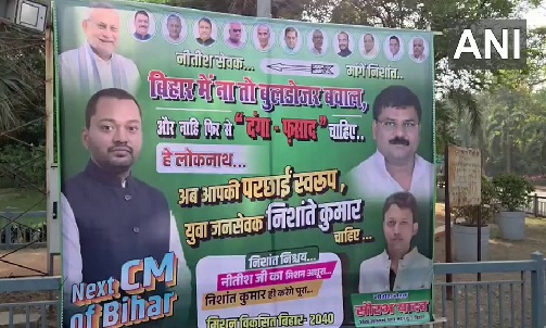 जनता दल (यूनाइटेड) के कार्यकर्ताओं ने पटना भर में पोस्टर लगाकर मुख्यमंत्री नीतीश कुमार के बेटे निशांत कुमार को बिहार का भावी मुख्यमंत्री बताया है। खबरों के मुताबिक,तड़के नीतीश सेवक के रूप में पहचान बताने वाले समर्थकों द्वारा लगाए गए इन पोस्टरों में निशांत कुमार से सक्रिय राजनीति में आने और नेतृत्व की भूमिका निभाने का आह्वान किया गया है। एक पोस्टर पर हिंदी में संदेश लिखा था कि हमें बिहार में बुलडोजर या दंगे-अशांति की जरूरत नहीं है। हमें लोकनायक की जरूरत है। अब समय आ गया है कि वे सामने आएं। हमें युवा नेता निशांत कुमार की जरूरत है।