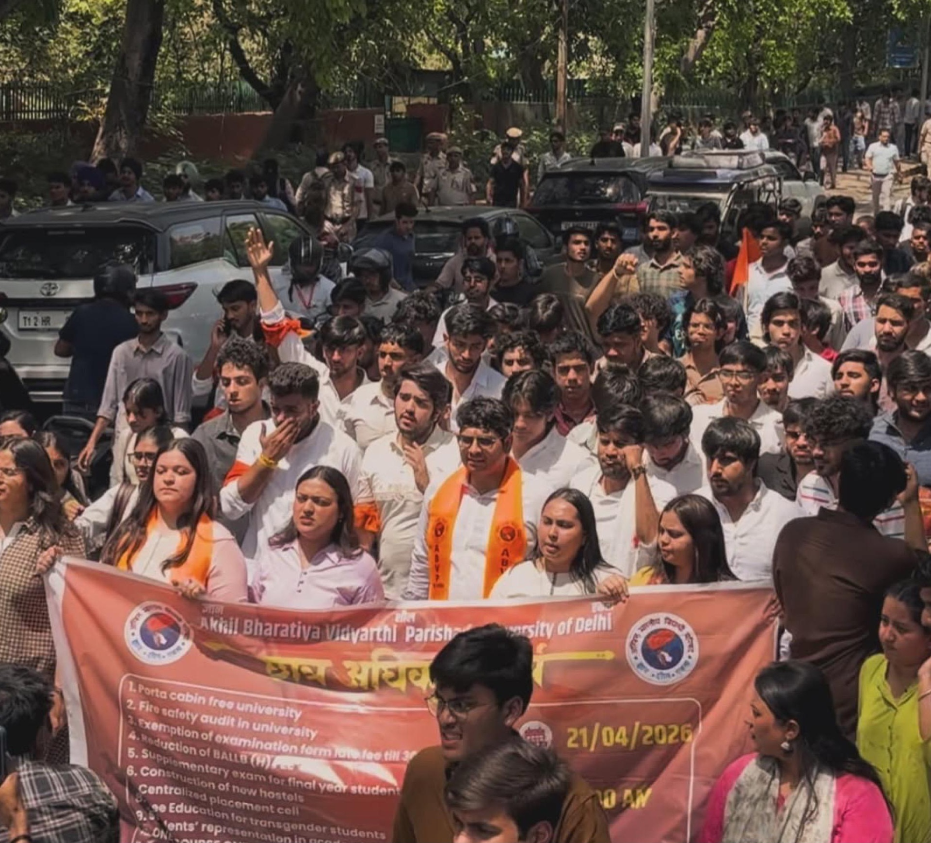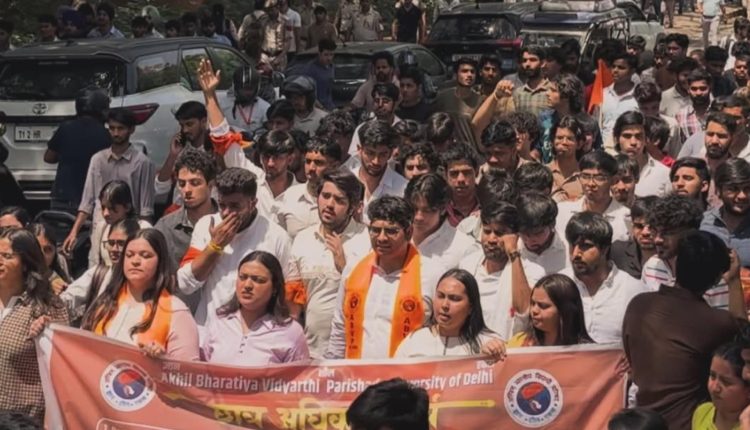 दिल्ली विश्वविद्यालय में अभाविप का ‘छात्र अधिकार मार्च’, 12 सूत्रीय मांगों को लेकर छात्रों का प्रदर्शन